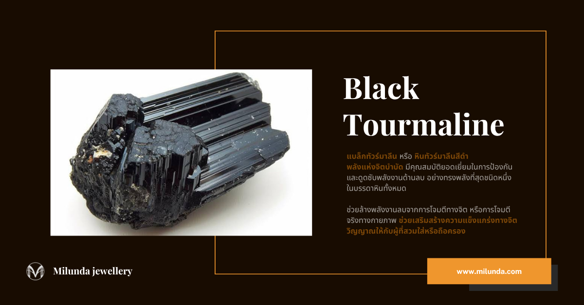 Black Tourmaline แบล็กทัวร์มาลีน หรือ หินทัวร์มาลีนสีดำ คือพลังแห่งจิตบำบัด มีคุณสมบัติยอดเยี่ยมในการล้างพลังงานจากการโจมตีทางจิต หรือการโจมตีจริงทางกายภาพ ช่วยเสริมสร้างความแข็งแกร่งทางจิตวิญญาณให้กับผู้ที่สวมใส่หรือผู้ถือครอง เป็นหนึ่งในหินที่ได้รับความนิยมสูงมากทั้งในประเทศไทยและต่างประเทศ โดยเฉพาะในสายของนักพลังงานบำบัด นักพลังจิต และการทำเครื่องรางของขลังเพราะเชื่อว่าหินนี้ มีพลังในการป้องกันและดูดซับพลังงานลบที่ทรงพลังที่สุดชนิดหนึ่งในบรรดาหินทั้งหมด